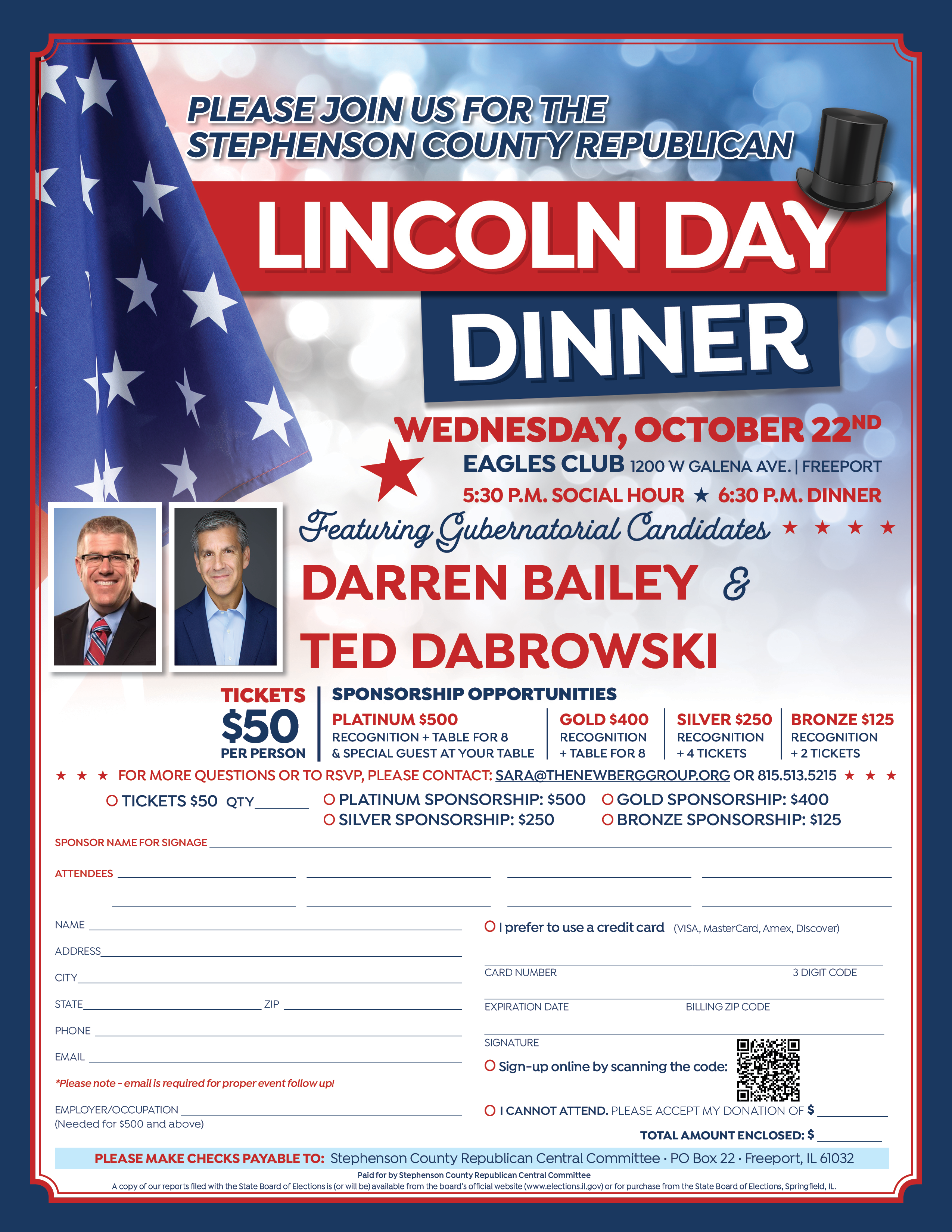 Oct. 22th - Stephenson County Lincoln Day Dinner (LDD)